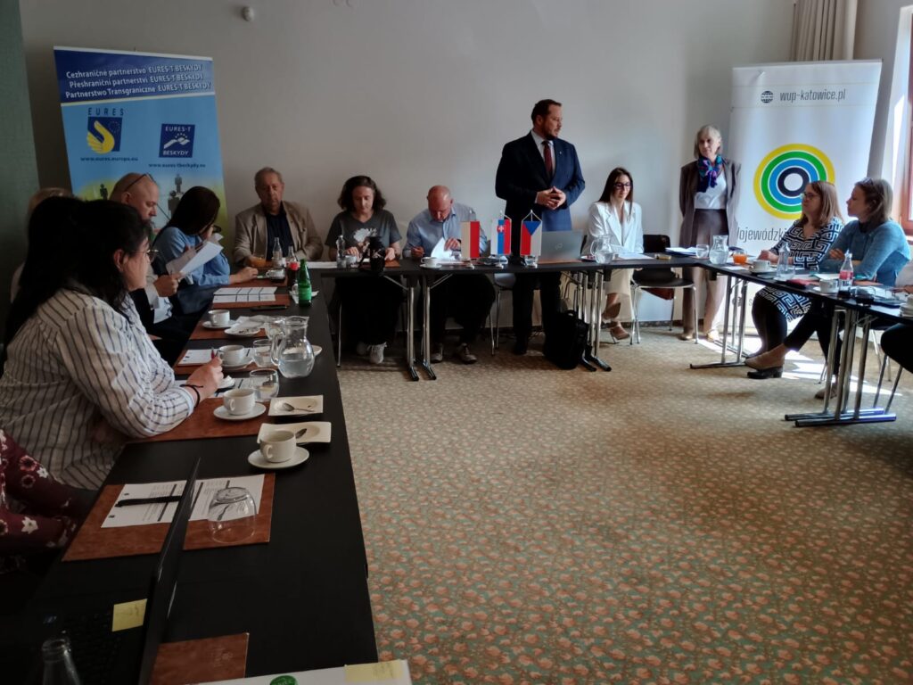 Spotkanie zostało zrealizowane w ramach projektu własnego WUP w Katowicach pn. „Wsparcie PSZ w świadczeniu usług w ramach partnerstwa transgranicznego EURES–T”. Projekt jest współfinansowany ze środków Europejskiego Funduszu Społecznego Plus w ramach Programu Fundusze Europejskie dla Śląskiego 2021-2027